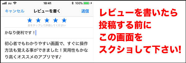 (2)次の画面でレビューを記入したら送信する前に画面をスクショ(スクリーンショット)撮影してください!